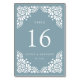 Cartões de números de tabela chic da Art deco apresentam um fundo azul de ardente, adornado com papel picado branco de líado, com detalhes nos cantos. Personalize com seus nomes e data de casamento, ou nomeie cada mesa para um toque pessoal extra. Design repete-se no lado oposto. Coordena-se com a nossa suíte de convite para casamento de Beaux Arts em Tourmaline.