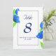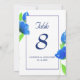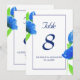 Cartão de números de mesa com flores silvestres em aquarela azul moderno. Escolha elegante para casamentos de verão. Parte de uma coleção de casamento.