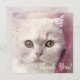 Texto personalizável na frente e no verso, gato branco em creme de morango.