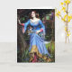 Cartão de John William Waterhouse Ophelia. Pintura a óleo em canvas desde 1910. O Waterhouse inglês de John do artista tirou freqüentemente em temas literários, e Shakespeare era uma de suas grandes fontes de inspiração. Pinturas múltiplas dedicadas Waterhouse à heroína condenada Ophelia de Hamlet. Esta pintura do detalhe caracteriza a menina que veste um vestido azul com capas e bordado vermelhos do ouro. O cabelo de Ophelia é castanho-aloirado e decorado com flores. Igualmente leva flores em sua saia enquanto pisa decisiva para o córrego em que perecerá. Um grande presente para fãs de J.W. Waterhouse, de Shakespeare, de Ophelia, dos Pre-Raphaelites, e da pintura romântica inglesa.