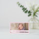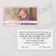 O design frontal apresenta a foto que você fornece como design principal e enquadrada em rosa. Uma faixa branca é exibida em rosa no nome da criança portadora da frente. O reverso apresenta uma oração personalizável para o seu bebê com data de nascimento e estatísticas apresentadas abaixo. Excelente de entregar a amigos e familiares para anunciar o nascimento do bebê. Também disponível em azul.
