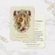 Com uma bela imagem católica tradicional do Espousal da Bem-Aventurada Virgem Maria e São José com flores de carlota vermelha. Uma oração está no verso para os noivos. Todo o texto e fontes podem ser modificados.