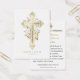 Nossos cartões de oração católicos de casamento apresentam uma bela imagem católica tradicional de uma cruz de ouro decorativa com rosas brancas. Uma oração está atrás da noiva e do noivo. Todo texto e fontes podem ser modificados.
