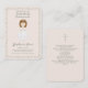 A menina comunista rezando cartão de oração Esta bela e doce design de primeira comunhão de uma menina morena rezando pacificamente em seu dia especial está em um pessegueiro pálido e um fundo de sábio. Acentuado com uma moldura de folha de flor silvestre. Tome as memórias excelentes da primeira comunhão sagrada do seu filho com este belo design. Confira os acessórios da Primeira Sagrada Comunhão, papelaria e presentes de comunhão.