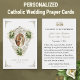 Com uma bela imagem católica tradicional de Maria e José com os corações de Jesus, Maria e José em ouro no verso. Uma oração também está no verso para os noivos. Todo o texto e fontes podem ser modificados.