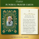 Um reverente e digno design católico, com ouro bordado de chamas bordado em uma elegante borda de nós Celta, ao redor de uma foto do seu amado partido. Junto com um fundo verde profundo que lembra a herança irlandesa, o verso inclui uma oração católica tradicional que invoca a intercessão da Bênção Virgem Maria e dos Santos. Ideal para missas funerárias ou serviços memoriais, este cartão serve como um bem sagrado para honrar uma vida de fé.