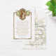 Apresentando uma bela imagem católica tradicional da imagem do betroleta de Maria e José sobre um quadro de ouro ornamentado com flores brancas e douradas e verso das escrituras para o casal do casamento. Todo texto e fontes podem ser modificados.