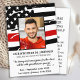 Cartão de Oração Memorial do Bombeiro Thin Red Line em uma design moderna de bandeira americana em cores de bandeira bombeiro. Personalize este cartão de oração memorial do bombeiro com a fotografia, o departamento, o nome e as datas do seu bombeiro. Perfeito para os bombeiros honrarem um bombeiro caído, e guardas memoriais do bombeiro. "Seja forte e corajoso, pois o Senhor estará com você onde quer que você vá." Joshua 1:9 ~ Citação atrás "Um Herói é...alguém que deu a sua vida a algo maior do que a si próprio." e Oração "Nós Mantemo-Nos Perto." Por favor, chame a atenção se quiser uma oração personalizada. COPYRIGHT © 2020 Judy Burrows, Black Dog Art - Todos Os Direitos Reservados. Cartão de Oração Funeral do Bombeiro Memorial