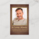 Este elegante cartão fúnebre de fotos do memorial cristão personalizado apresenta uma foto bordada por um falso quadro dourado sobre um fundo em couro castanho falso e abaixo da foto no moderno roteiro dourado escrito manualmente, onde se lê "In Loving Memory" com um nome, e datas para personalizar . A parte traseira da placa tem Psalm 23 que pode estar.deixado como está ou personalizado para outra oração. Elaborado por ©Susan Coffey.