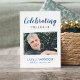 Esta elegante carta de oração azul ao memorial de fotos é uma bela maneira de lembrar um ente querido durante a celebração do serviço de vida. Isso faz uma bela manutenção que você pode exibir em sua casa depois.