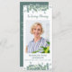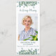 Simpatia Eucalyptus moderna Compaixão funerária Cartão de Oração. Este simples, mas elegante cartão de oração memorial apresenta um moderno design de eucalipto verde. Frente "In Loving Memory" Personalize este cartão de oração do funeral memorial com a foto, o nome e as datas de seus entes queridos e o sentimento. Poema 'Miss Me', que pode ser personalizado, por favor, contacte se quiser uma design com um poema específico que não. Este cartão de oração memorável será um guardião precioso, para os serviços funerários e para a celebração da vida. COPYRIGHT © 2020 Judy Burrows, Black Dog Art - Todos Os Direitos Reservados. Cartão de Oração Funeral Eucalyptus Memorial com Foto