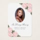 Cartão de memória floral, cor-de-rosa e prateado, elegante/cartão de oração fúnebre com uma foto enfeitada com rosas de cor-de-água cor rosa pincelada e flores de hálito de bebê em um fundo branco comum.