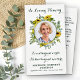 Simpatia de girassol Eucalyptus moderna Cartões de oração funerários. Este simples, mas elegante cartão de oração memorial apresenta um eucalipto verde moderno e um elegante design de girassóis. Frente "In Loving Memory" Personalize este cartão de oração do funeral memorial com a foto, o nome e as datas de seus entes queridos e o sentimento. Poema 'Miss Me', que pode ser personalizado, por favor, contacte se quiser uma design com um poema específico que não. Este cartão de oração memorável será um guardião precioso, para os serviços funerários e para a celebração da vida. COPYRIGHT © 2020 Judy Burrows, Black Dog Art - Todos Os Direitos Reservados. Memorial Sunflower Eucalyptus - Cartão de Oração Funeral
