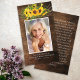 Este cartão poema memorial pode ser entregue como guardião numa Celebração da Vida ou num serviço funerário ou enviado como homenagem especial a quem não pôde estar presente. Este cartão pode ser personalizado com uma foto favorita e sua escolha de oração ou poema. A fotografia é para fins ilustrativos e pode ser alterada para uma de vocês.