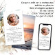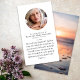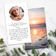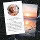 Este cartão poema memorial pode ser entregue como guardião numa Celebração da Vida ou num serviço funerário ou enviado como homenagem especial a quem não pôde estar presente. Este cartão pode ser personalizado com uma foto favorita e sua escolha de oração ou poema. A fotografia é para fins ilustrativos e pode ser alterada para uma de vocês.