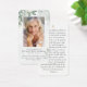 Este cartão poema memorial pode ser entregue como guardião numa Celebração da Vida ou num serviço funerário ou enviado como homenagem especial a quem não pôde estar presente. Este cartão pode ser personalizado com uma foto favorita e sua escolha de oração ou poema. A fotografia é para fins ilustrativos e pode ser alterada para uma de vocês.