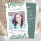Simpatia Eucalyptus moderna Cartões de Oração Funerários. Honre a memória de seu amado com nosso Cartão de Oração Memorial. Perfeito para funerais, serviços memoriais, e celebrações da vida, esta carta serve como um amor sincero para a família e os amigos. Design personalizado: Adicione uma foto carinhosa do seu amado para criar um tributo verdadeiramente personalizado. Poema Significativo: Escolha entre uma seleção de poemas sentidos que capturam a essência do espírito e legado de seu ente querido. Crie uma lembrança duradoura que comemore a vida e o legado de seu ente querido com este saboroso e sentimental cartão de oração.