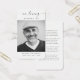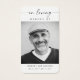Capturar a essência da memória com a nossa moderna Simpatia Fotográfica Funeral Memorial Prayer Card. Este cartão personalizado é uma forma sincera de honrar a memória do seu amado durante um período difícil. A design minimalista e elegante exude simplicidade e graça, permitindo que o foco permaneça na preciosa foto que você escolheu incluir. As palavras "In Loving Memory" servem como um lembrete gentil do impacto que seu ente querido teve na sua vida e na vida de outros. Com o seu moderno fundo branco, esta oração oferece uma estética limpa e contemporânea. É uma manutenção significativa que dará conforto e consolo àqueles que a recebem. Crie um tributo duradouro ao seu amado com o nosso Cartão de Oração Memorial de Foto Funeral Moderno e partilhe a sua memória com aqueles que mais importavam.