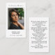 Dimensões de cartão de visita: 3,5" x 2,0". Este simples cartão de oração memorial pode ser dado como guardião numa Celebração da Vida ou num serviço funerário ou enviado como homenagem especial aos que não puderam estar presentes. Personalize este cartão com uma foto favorita, o nome do seu amado, datas e a sua escolha de oração ou poema. Fácil de personalizar.