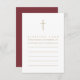 Este clássico envelope burgundy pode ser usado para uma festa de bênção cristã para mãe e bebê como uma maneira doce de os convidados compartilharem suas orações e palavras de encorajamento com a futura mamãe. Uma simples cruz dourada fica no topo do cartão minimalista, e o verso é um burgundy elegante. A cor do cartão é facilmente editável para a cor personalizada desejada. Notas de bênçãos para mães são uma maneira linda de presentear a futura mamãe durante a gravidez, o próximo trabalho de parto e a fase de recém-nascido do bebê com afirmações lindas, bênçãos, encorajamento e oração. Compre nesta loja convites de bênção cristã e etiquetas de velas de oração coordenadas.