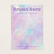 Placa de exibição de joias que apresenta sua marca em uma fonte arrojada e roxa em um fundo de aparência opal roxo e rosa.