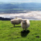 Design fotográfico de ovelhas de montanha galesas e visões do estuário do Dyfi. País de Gales, Reino Unido.