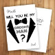 Placa de solicitação simples de padrinho de casamento preto e branco, com um teto de smoking preto e branco, com uma gravata de bolso. ++++++++++++++++++ Fácil de personalizar em ambos os lados!