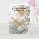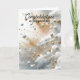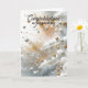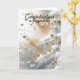 Um cartão de parabéns artístico com um surto caprichoso de nuvens brancas fofas e esferas aleatórias de vários tamanhos, reminiscente de uma explosão galáctica, ideal para várias ocasiões comemorativas.