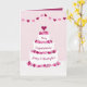 Cartão personalizado de parabéns de casamento com um beliche e um tradicional bolo de casamento branco, com três camadas, coberto de pétalas rosa e roxa. O fundo frontal tem um design cor-de-rosa e rendas. Perfeito para casamentos e fãs de assar. Os nomes do marido e da esposa mostrados, assim como a mensagem de dentro, podem ser personalizados.