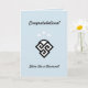 Cartão de parabéns de moda com um triplo diamante elegante e um sol nascente com três estrelas no topo em fundo azul claro. Ideal para formatura, nova casa, casamento, novo emprego, promoção, aniversário ou qualquer outro evento memorável da nova vida. O texto pode ser personalizado!