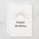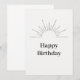 Um cartão de parabéns do sol com um fundo. O design apresenta uma grande ilustração do sol alegre no centro, com um rosto sorridente e raios radiantes. Ao redor do sol, há detalhes divertidos como pequenas nuvens, confetes ou estrelas minúsculas em tons brancos e pastéis. O texto "Feliz Aniversário, Brilho do Sol!" é escrito em letras negrito e artísticas,