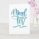 Um cartão de parabéns, com letra à mão e floreios numa paleta de azul e verde, é adequado para congratulações por ocasião de nascimentos, casamentos, bar e bat mitzvahs, confirmações e mais.