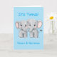 Cartão de parabéns dobrado para bebês gêmeos - são gêmeos! Celebre a chegada de bebês gêmeos com este cartão de saudação adorável e personalizável! A frente apresenta dois pequenos elefantes doces e a mensagem "São Gêmeos", com espaço para personalizar o cartão com os nomes dos gêmeos. Dentro, uma mensagem sincera diz: "Duas vezes a risada, duas vezes a alegria — que bênção, dois garotos! Parabéns nos seus belos filhos gêmeos! Desejando à sua família alegria infinita, amiguinhas confortáveis e memórias inesquecíveis enquanto seus meninos crescem lado a lado." - personalize o texto conforme necessário. Perfeito por acolher gêmeos recém-nascidos, este cartão é um encantador guardião para os orgulhosos novos pais. Ideal para chás de fraldas, para o nascimento de parabéns gêmeos, ou para enviar desejos calorosos a uma família em crescimento. Projetado por Best Baby Gifts - dado com amor.