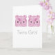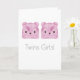 Bem-vindos aqueles bebês preciosos com esta adorável carta dos gêmeos boho. A frente apresenta dois chapéus bonitos de bebês de boho. Na dentro está uma pequena e doce mensagem que você pode personalizar e é perfeita para acolher gêmeos de novas filhas. Possui chapéus de bebê aquarela para um conjunto de gêmeos meninas. Você pode personalizar este design clicando em "Personalizar este modelo" ou se quiser alterar a fonte, as cores ou organizar os elementos design de uma forma diferente, você pode clicar em "Editar usando a Ferramenta Design".