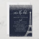 Cartão de Paris Torre Eiffel Azul-Marinho Prata Save The Date. Personalize este design personalizado com seus próprios detalhes.