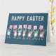 Cartão de Páscoa para alguém com um nome de 7 letras. Divertido cartão de Páscoa com ilustração de coelhos em rosa e azul. Os coelhos estão segurando cartões para soletrar o nome.