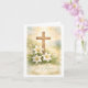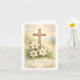 Este cartão apresenta uma bela ilustração de uma cruz de madeira e lírios da Páscoa, com o texto Ele Ressuscitou, da artista digital Jayne Wilson.