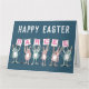 Cartão de Páscoa para alguém com um nome de 6 letras. Divertido Cartão de Páscoa com ilustração de Coelhos em rosa e azul. Os coelhos estão segurando cartões para soletrar o nome.