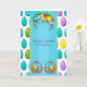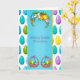 Cartão de páscoa para a vovó, num design azul, branco e colorido de ovos, cestos de Páscoa e flores. Obrigados para a Creative Fabrica para alguns dos elementos na design.