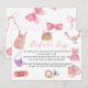 Um adorável cartão de pedido de livro de chá de bebê boho clothesline. Os visitantes são convidados a trazer um livro infantil novo ou usado em vez de um cartão.