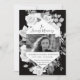 Esta Elegante carta de Poema de Oração Fotográfica com um buquê exuberante de rosas brancas, uma foto do seu ente querido em quadro branco, seu nome e datas de vida e texto em memória amorosa em fundo preto. O verso desta placa poema é preto com rosa de quadro floral com salmo.