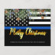 Enviem saudações de Feliz Natal a amigos, família, colegas departamentos de polícia e a sua comunidade com este Cartão de Natal Útil da Polícia de Linha Azul - Bandeira Americana em cores de bandeira policial, preto e azul moderno com folhas e bagas ocas e um roteiro elegante de ouro. Personalize com sua mensagem e seu nome de família ou departamento de polícia. Estes cartões de Natal da polícia são perfeitos para as famílias da polícia e polícias, bem como para os departamentos da polícia. COPYRIGHT © 2020 Judy Burrows, Black Dog Art - Todos Os Direitos Reservados. Cartão de Férias de Polícia Azul Fino da Polícia de Orçamento