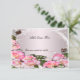Lindas rosas cor-de-rosa com pérolas em um fundo cor-de-rosa. Deixe seus convidados saberem onde devem se sentar com este lindo cartão de posicionamento. Personalize o cartão alterando o texto nos campos fornecidos na frente e no verso. Você pode alterar o estilo da fonte, tamanho, cor, bem como o tipo e estilo de papel.