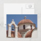 Fotografia de arquitetura tirada em Creta, Grécia. Uma vista cênica de um topo da igreja com um teto em forma de sino e cúpula com céu azul sem nuvens atrás. Um cartão de posto da igreja bonito, religioso ou não.