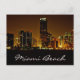 Bem-vindo a Miami Beach, Flórida! Esta divertida carta de posto mostra uma vista noturna do horizonte de Miami Beach com as luzes brilhando da bela costa da praia.