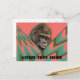 Cartão poste com um gorila engraçado e suspeito espreitando em volta de um cobrir projetado em um padrão de fenda zigzag rosa e verde. Personalize com seu próprio texto.