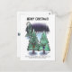 Um cartão com uma banda desenhada engraçada sobre árvores de Natal e Natal. O fundo, a imagem e o texto podem ser personalizados.