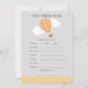 Cartão de previsão de bebê com design de balão de ar quente amarelo e fundo polkadot.