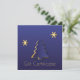 Ilustração elegante de Natal com uma árvore de Natal azul e simples com flocos de neve ouro. Esta design de arte em papel é moderna, festiva, minimalista e profissional.