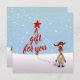 Uma bela e engraçada ilustração de Natal: Uma rena com passos na neve e uma grande tipografia "um presente para você" árvore.